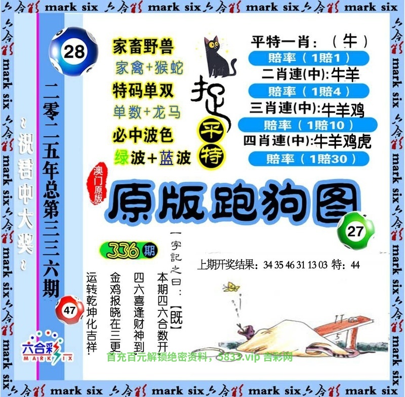 | 336期【单数】主【蛇鸡兔】开:牛17中 |